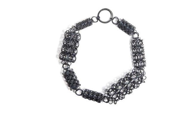 This box is part of the Intersections series in which Nikolay uses the same number of components to put together forms with different characteristics; pattern, density and size. Building forms becomes a game of exploring variations. Each piece is first built in wax and then cast in a blackened silver structure.