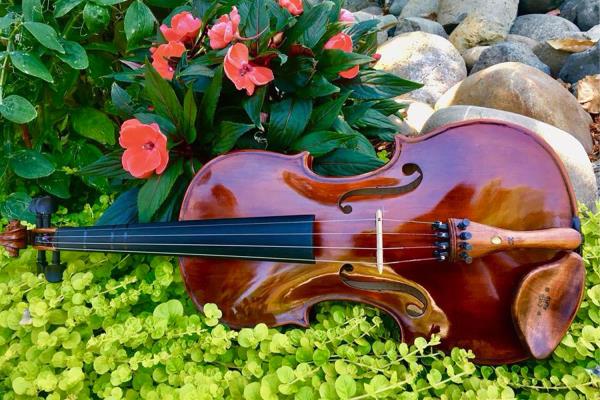 This five-string electric violin was made by Ingars Rancevičs, designed by Laura Saukane, and the electronics made by Nikolajs Savinovs. The body is designed as an acoustic violin, only with a smaller area. Thus, the electric sound is very close to the natural sound of the violin. The violin was presented at the exhibition Building Musical Instruments in Latvia in 2018.