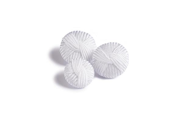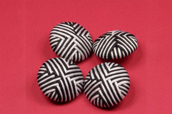 These finely handcrafted passementerie buttons were covered with hand woven gold and silver viscose threads, braided in soutache, a narrow flat decorative type of braid.