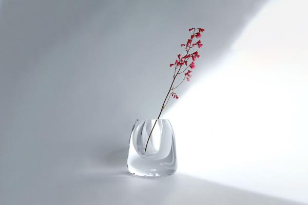 This sophisticated dual purpose bowl and tray is part of the Calm collection. It was free-formed and mouth-blown. Its unique form and texture were achieved by using a deep relief imprint. The series drew inspiration from fog and dew, as well as local glass traditions, interpreted in a contemporary way.