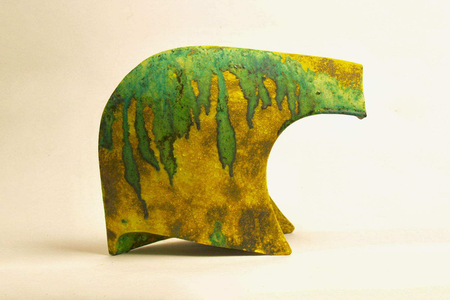 The Candelaria Form series' sharp and sleek forms are inspired by elements of the Irish landscape and topography. Concerned with line, form and balance, they are finished with bright, textured and variable glazes that signify the luscious mosses and lichens found in the understory of Irish woodlands. Hand built using slab and coil techniques, the pieces are individually constructed and formed before undergoing multiple firings.