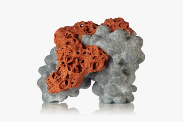 This work forms part of the Erupting Cloud Cluster series of sculptures. It is the largest and tallest from the sequence. A matt bronze glaze flows down onto the golden cluster of clouds from the tangled network of webbing. This sculpture modelled by hand was a challenge to place in the kiln. It was shown and sold at Alveston Fine Art at the end of 2019.