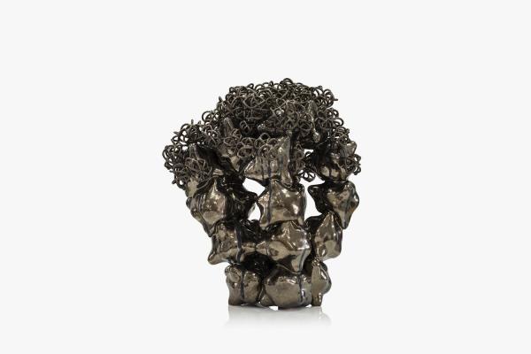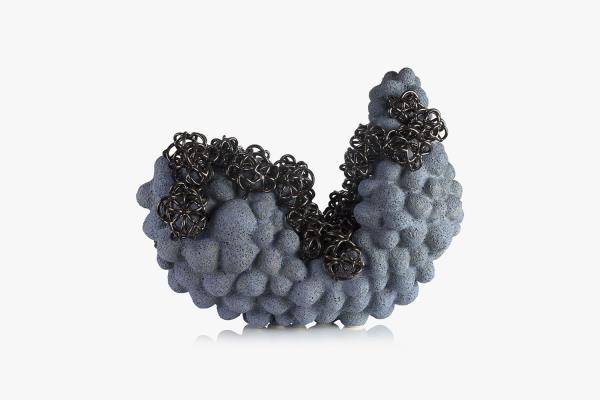 This handmade sculpture is from a series of larger works called Cocoon Clouds, where the idea was to create dynamic cocoon-like forms. The glazes were developed especially for this piece so that a rust red flows around the soft blue structure. It was exhibited and sold to a collector at Cloudspotting, a solo show with Jason Jacques Gallery in New York.