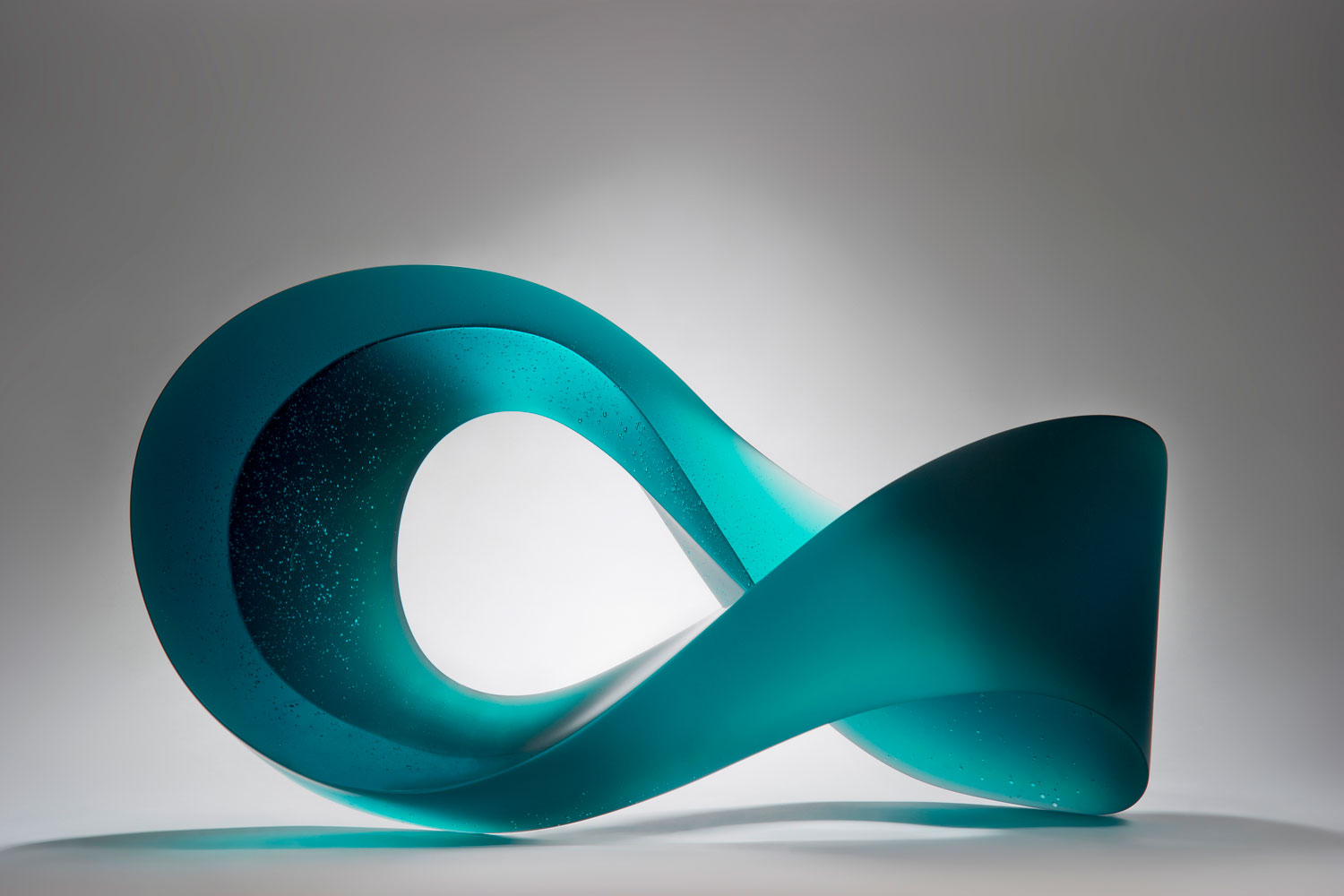 In this substantial glass sculpture, the colour fades from a rich, saturated turquoise in the more solid parts to almost clear along the edges; the polished surface lets the light in, to be captured and diffused by the hand-sanded silky matt surfaces. Analemma won the Worshipful Company of Glass Sellers Arts and Crafts Award in 2017. All Heike's works are signed and dated.
