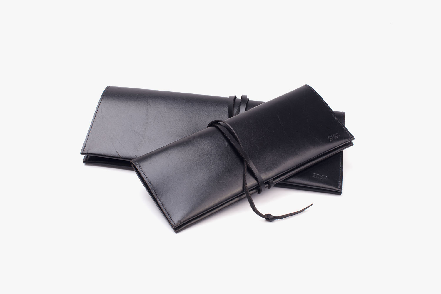 This minimalist clutch was designed with a single piece of black leather, making it an elegant accessory for everyday use.