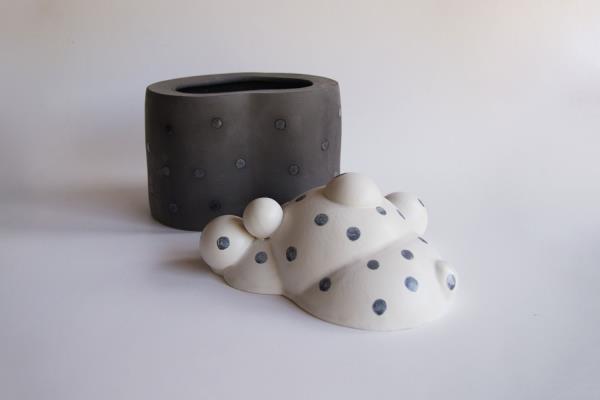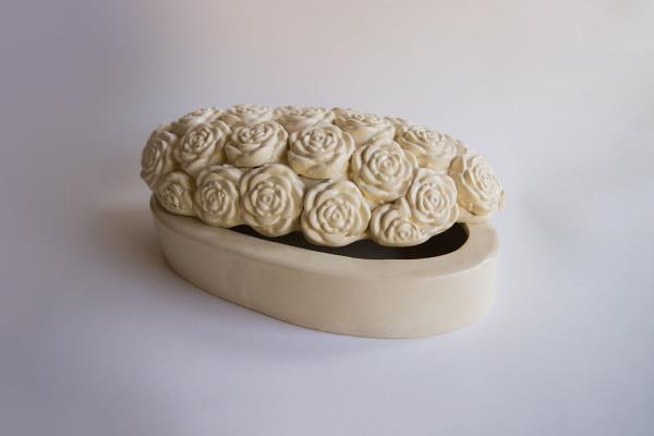 Rasa Justaité-Gecevičiené's grandmother's chest contained her bridal dowry: hand embroidered pillows, tablecloths and bedspreads, items used to decorate her house for over 40 years. Today, Rasa has inherited them. Most of them are obsolete and outworn. Rasa cannot embroider them herself, so she decided to recreate these decorations on a ceramic surface. All the patience and love she received from her family, and which will be passed on to her daughter, is reflected in the print.
