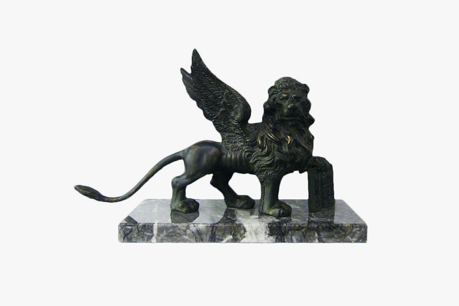 The Leone Regina Elisabetta was based on a sculpture made for the occasion of Queen Elizabeth II's visit to Venice in 1966. The winged lion was made of green patinated bronze and is standing on a polished marble base.