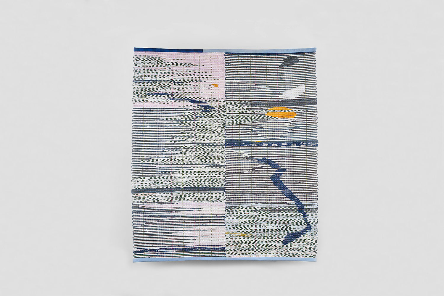 This woven wall piece is part of a series of five, created with recycled cotton threads and rags. The project, initiated for a gallery exhibition in Geneva, is called Domestic Surface and represents the different rooms within a house.