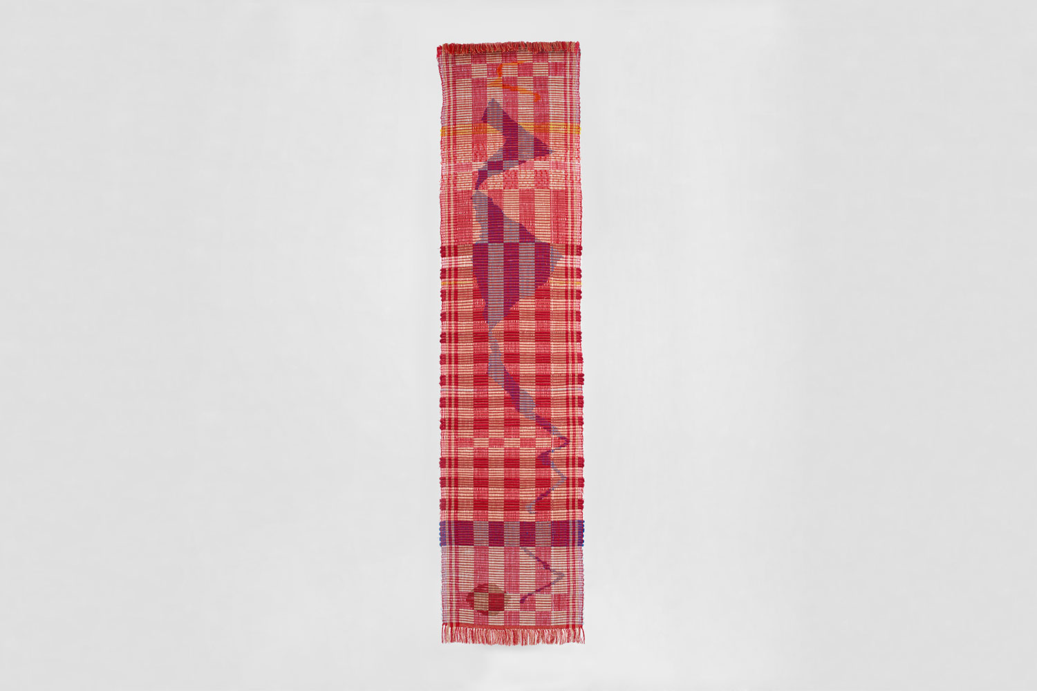 This woven wall piece is part of a series of five, created with recycled cotton threads and rags. The project, initiated for a gallery exhibition in Geneva, is called Domestic Surface and represents the different rooms within a house.
