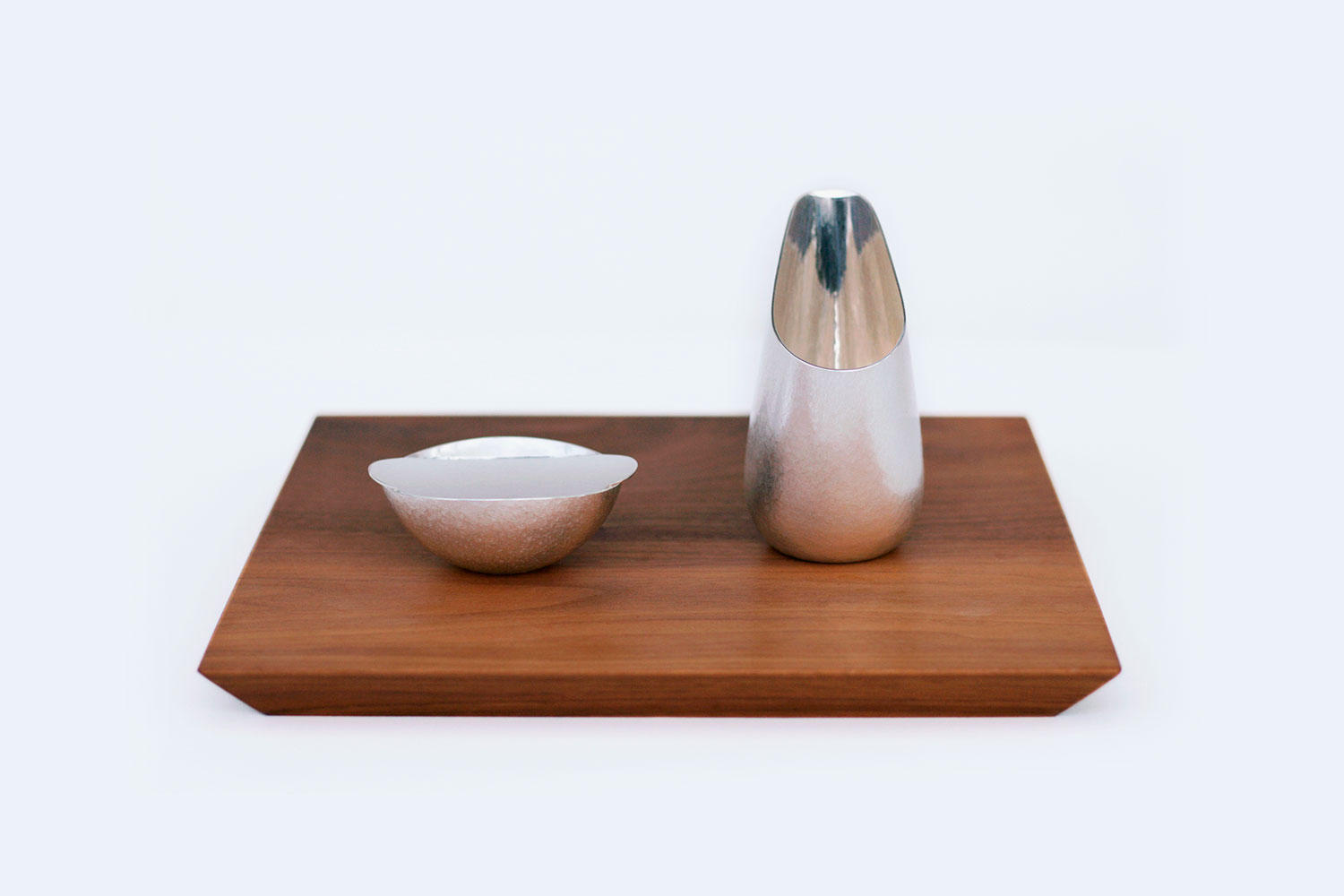 This sugar and milk set was hand forged in fine silver. The oval bowl of the sugar sprinkler has a slightly curved lid which is suspended by two 'ears'. The sprinkler fits perfectly in your hand and dispenses sugar via a fine jet below the ears. The soft, organic shape of the milk pot contrasts with its clear, strong opening, which contributes to the pot's overall balanced shape and pleasing feel.