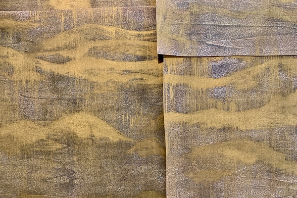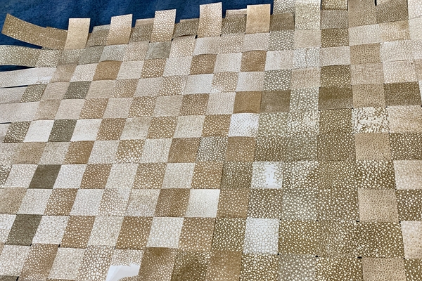 The sculpture Mishinoku is a complex assemblage of multicoloured hand-printed awagami paper carefully featuring one hundred delicately designed leaves.