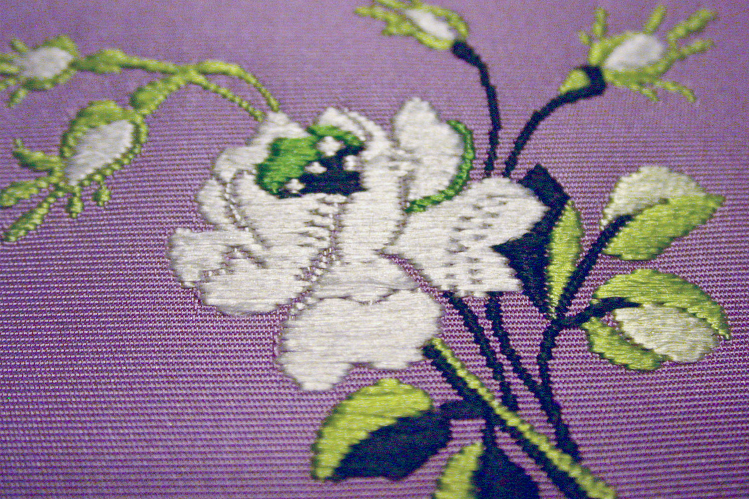 This hand woven brocade satin fabric and brocade gros-de-tour fabric with polychrome silk is intended for upholstery. The fabric is a reproduction of a 1781 textile ordered for Marie Antoinette's private apartments at Versailles.