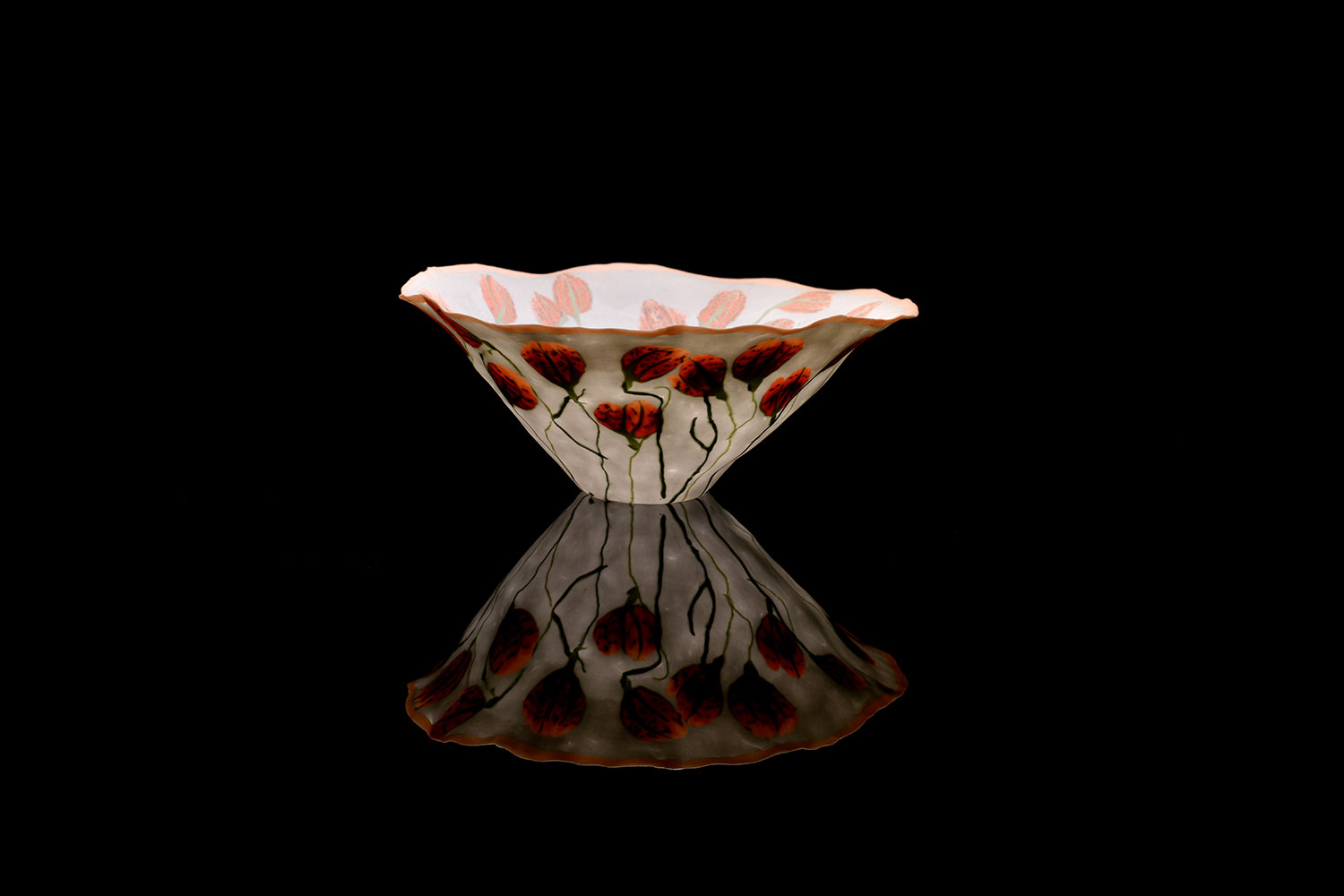 This delicate porcelain vessel was created using the old and arduous Japanese Nerikomi technique. Margarita presses many small pieces of coloured porcelain into a new sheet of porcelain, flat like a mosaic, to create the flora-inspired pattern. This porcelain sheet is then placed over a mould to give it its final shape.