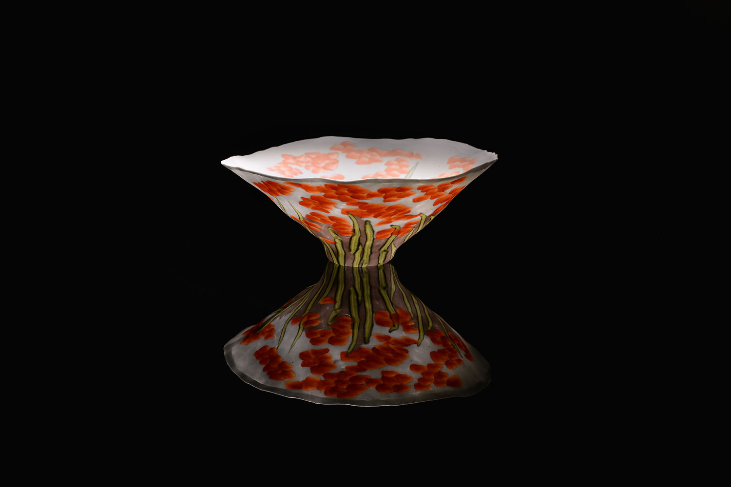 This delicate porcelain vessel was created using the old and arduous Japanese Nerikomi technique. Margarita presses many small pieces of coloured porcelain into a new sheet of porcelain, flat like a mosaic, to create a pattern inspired by underwater flora. This porcelain sheet is then placed over a mould to give it its final shape.