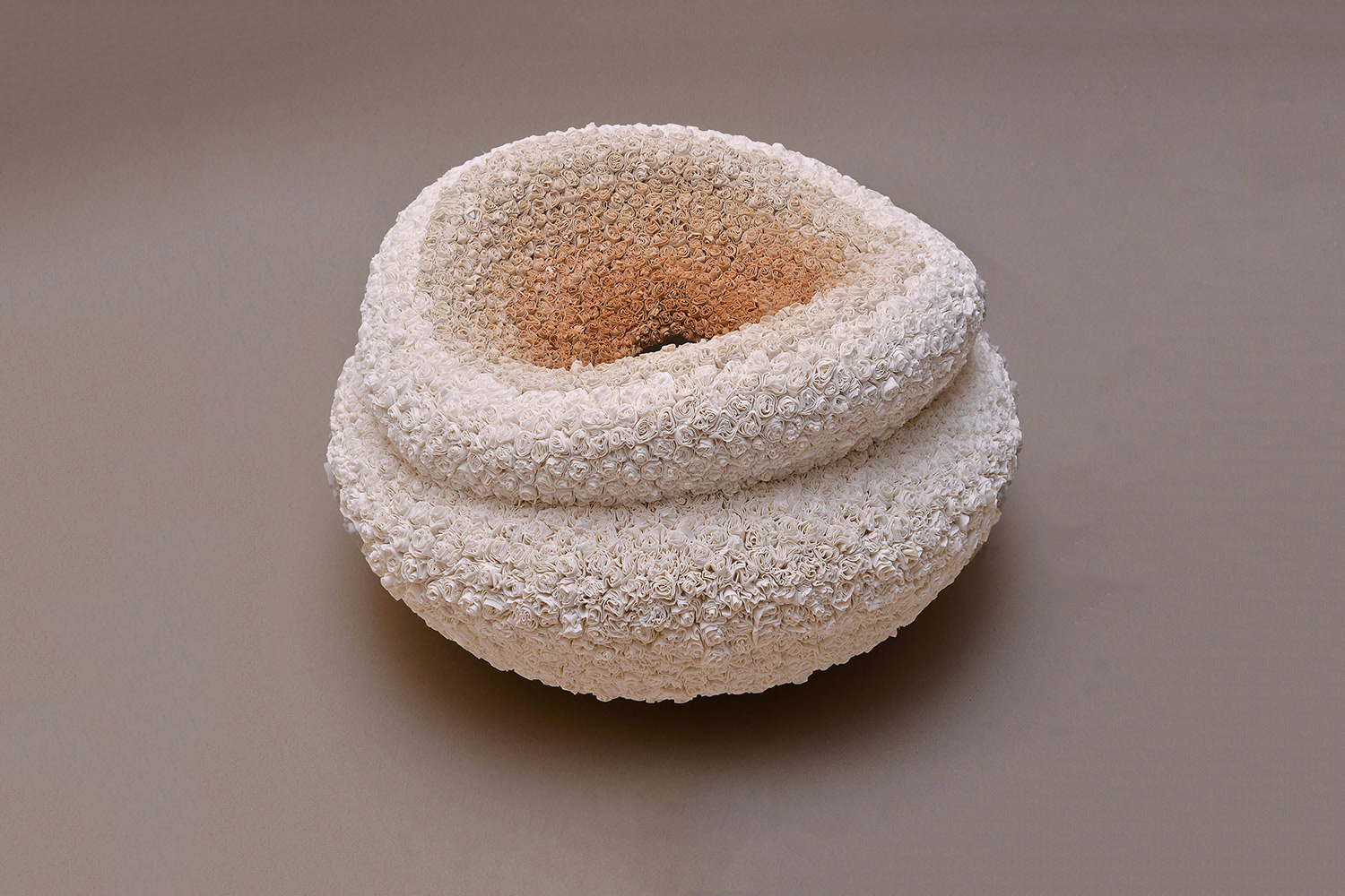 Margarita drew her inspiration for this delicate porcelain form from coral-like structures. After creating an initial form, she made hundreds of small, individually flattened pieces of porcelain and added them to the structure, giving it this final form.