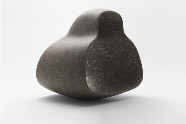 This work was coiled with a building and breaking action. It is finely balanced and the grey lines are inlaid. Through multiple firings the form reached maturity. It was then diamond polished.