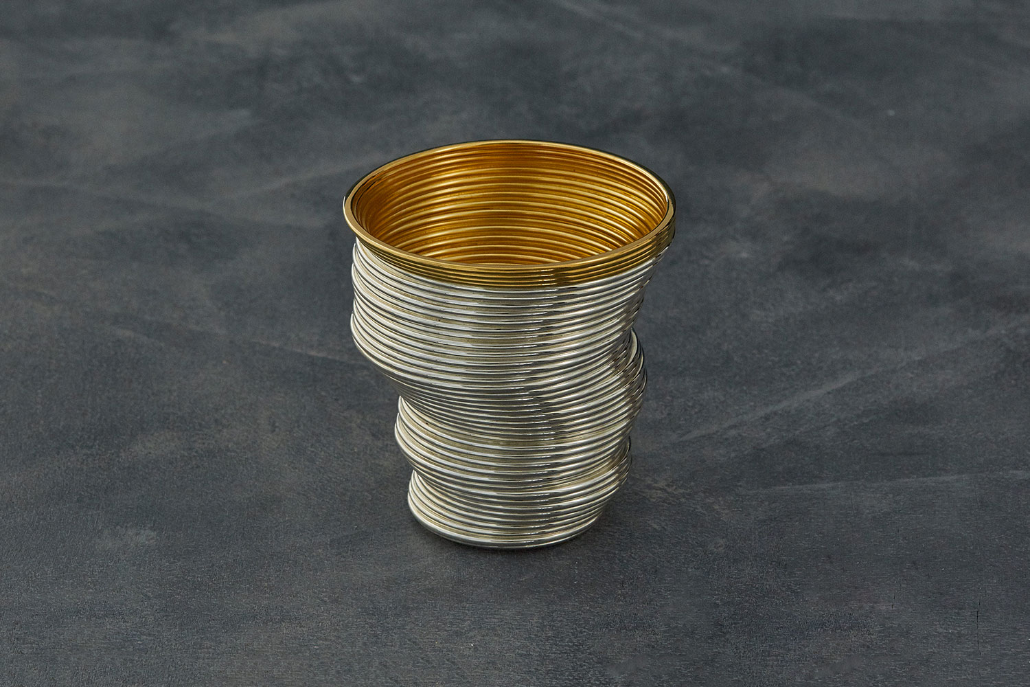 Looking at the rings in a tree trunk can help us determine its age but also tell stories about historical times. This has been a constant inspiration to Nan Nan, who builds up her works in clearly defined layers recounting the story of the piece's creation. Nan Nan assembled layers of fine silver wire then soldered them together, creating the final irregular form.