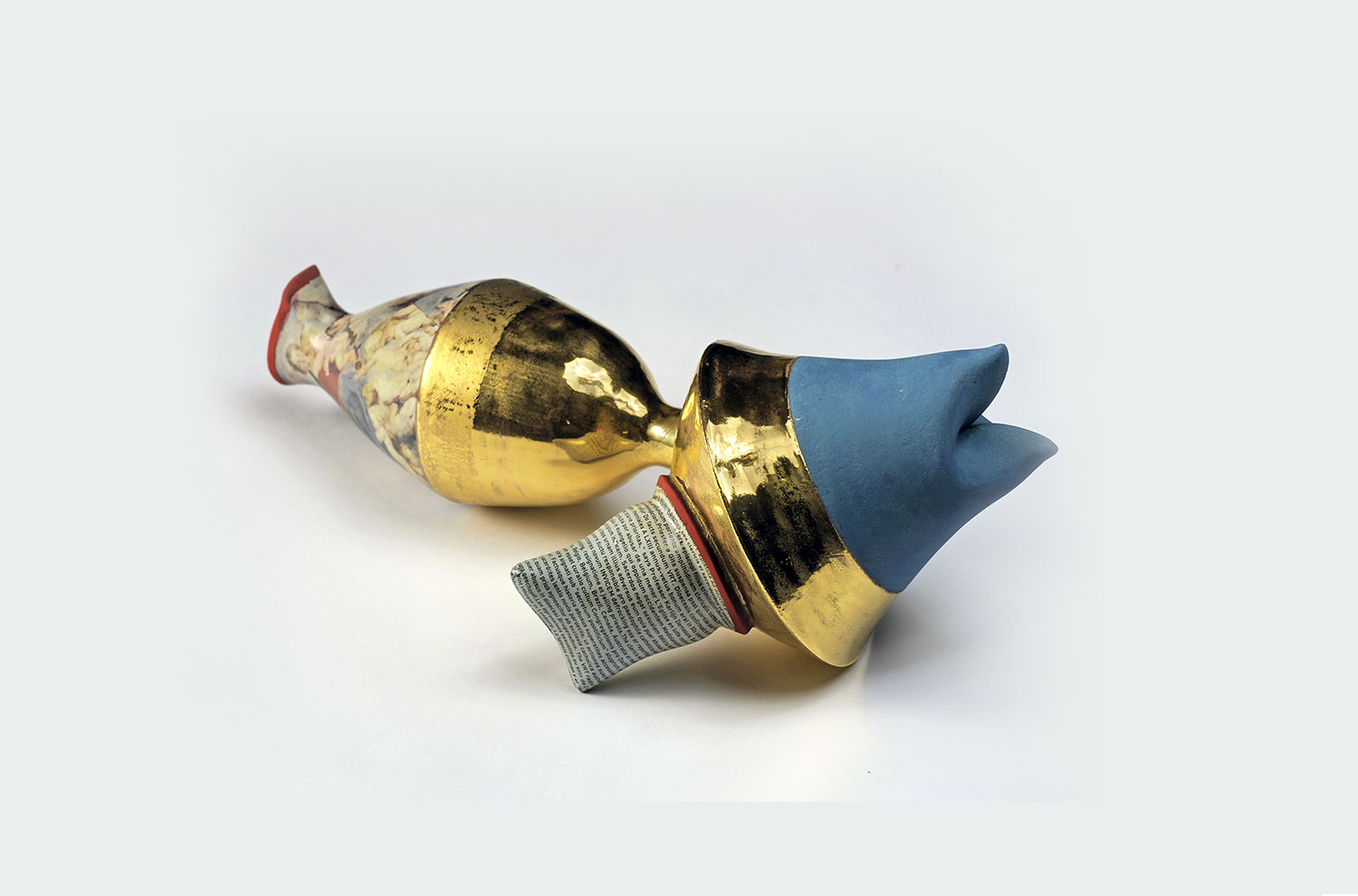 This stoneware sculpture is part of a series, The Rooster Crowed for the Sixth Time, a reflection on the misuse of power as well as the abuse of children by members of religious orders. Reinhilde considered how those accused of wrongdoing were transferred to other parishes in a vain attempt to solve the problem but resulting only in creating new victims.