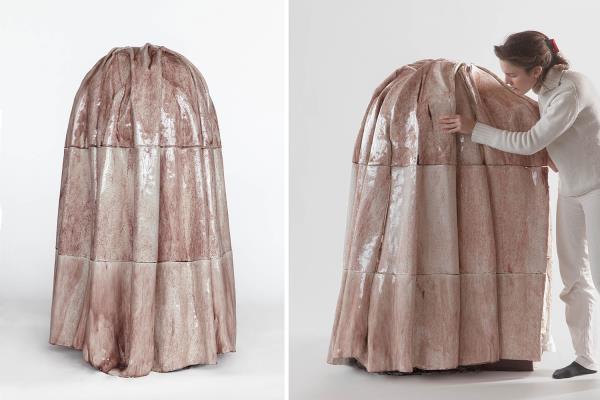 The exterior of this fire-trunk stove has been designed to reflect the effect of fire on tiles. The terra sigillata surface bears traces of the flames that moved across it, scorching the tiles and transforming their original white colour into shades of grey and black.