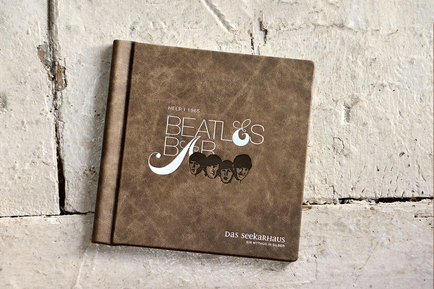 This brown leather case was commissioned by the Beatles Bar of the Seekarhaus hotel in Obertauern, Austria. The leather has been imprinted in black and silver. The Fab Four filmed part of Help in this ski resort.
