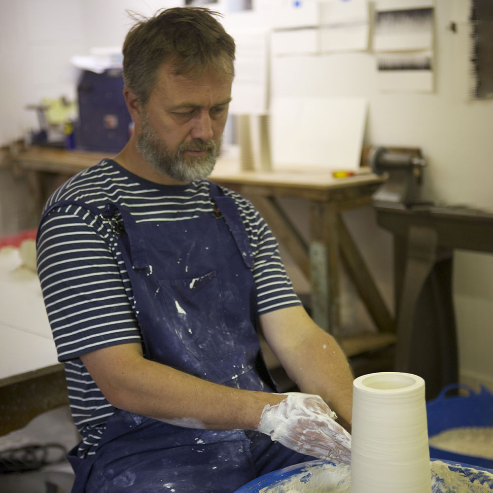 Nicholas makes lathe-turned ceramic sculptures