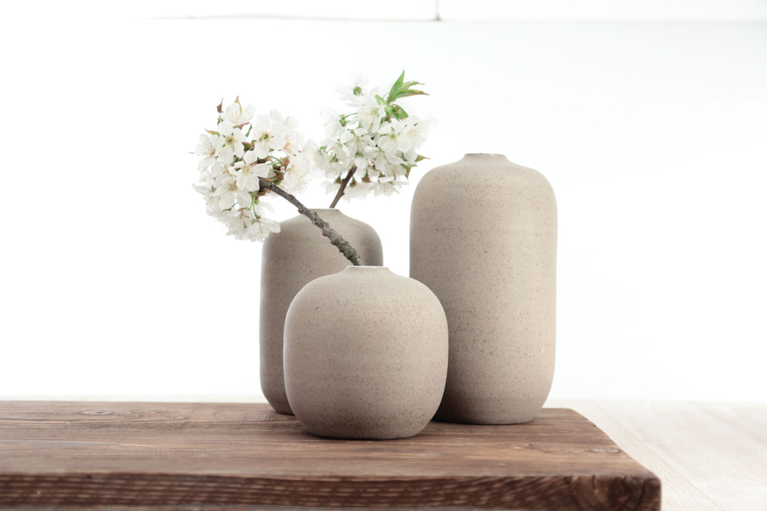 Three large gourd-shaped vessels of different sizes make up this handcrafted stoneware set. They were hand thrown on the wheel, fired and glazed, before going through a second session of firing at 1150°C.