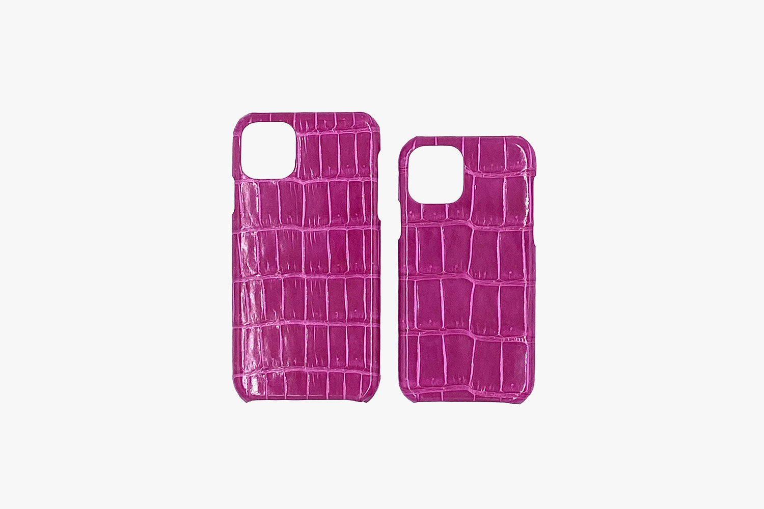 These iphone 11 covers are fully handcrafted in pink crocodile leather. They come in a variety of colours and feature a microfibre interior and hand painted edges.