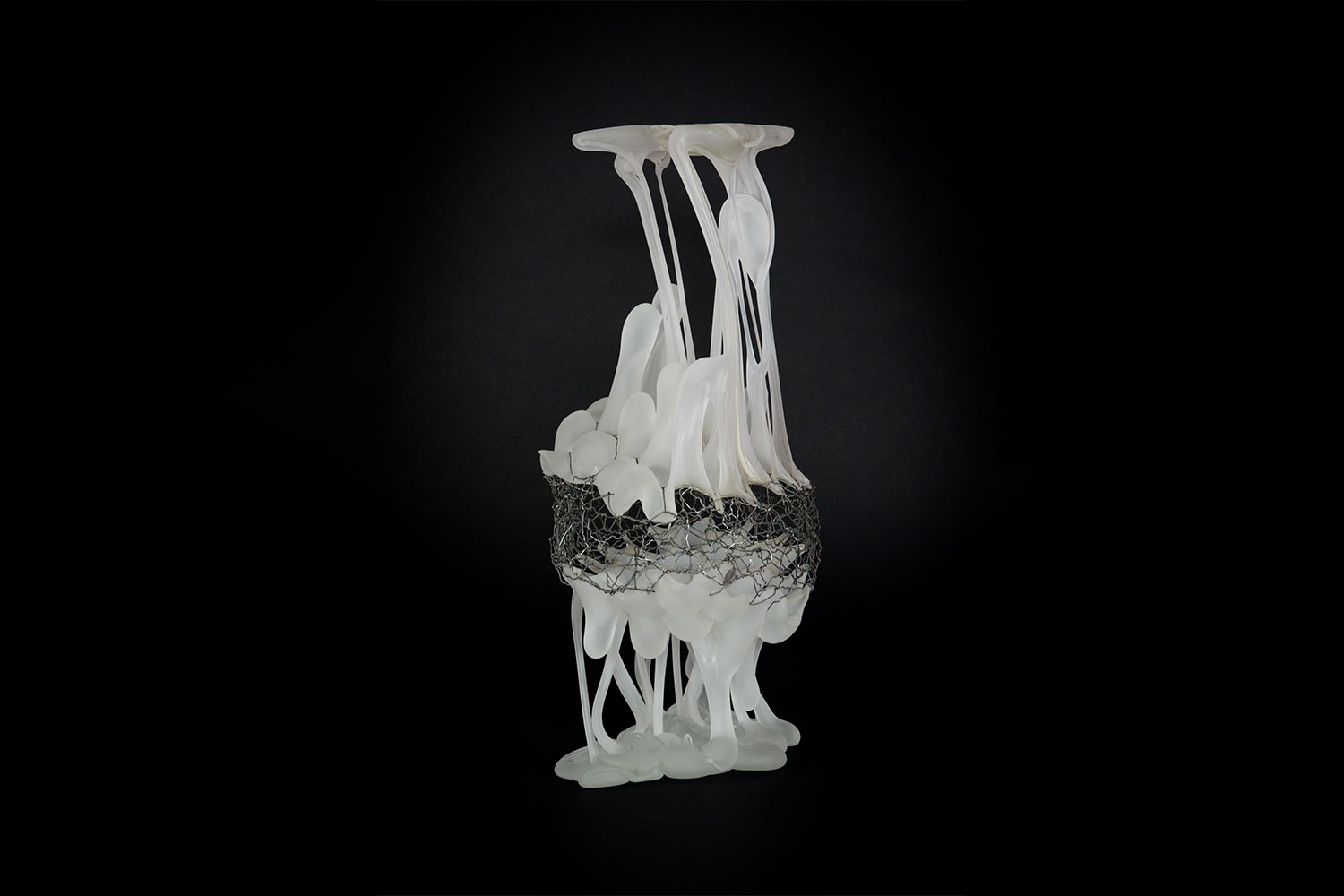 This glass sculpture was hot shaped and sandblasted. Alexandra imagined the piece as a portrait of the immaterial act of remembering. It embodies the way memories – 'vapours' from the past – translate into thoughts of the future.