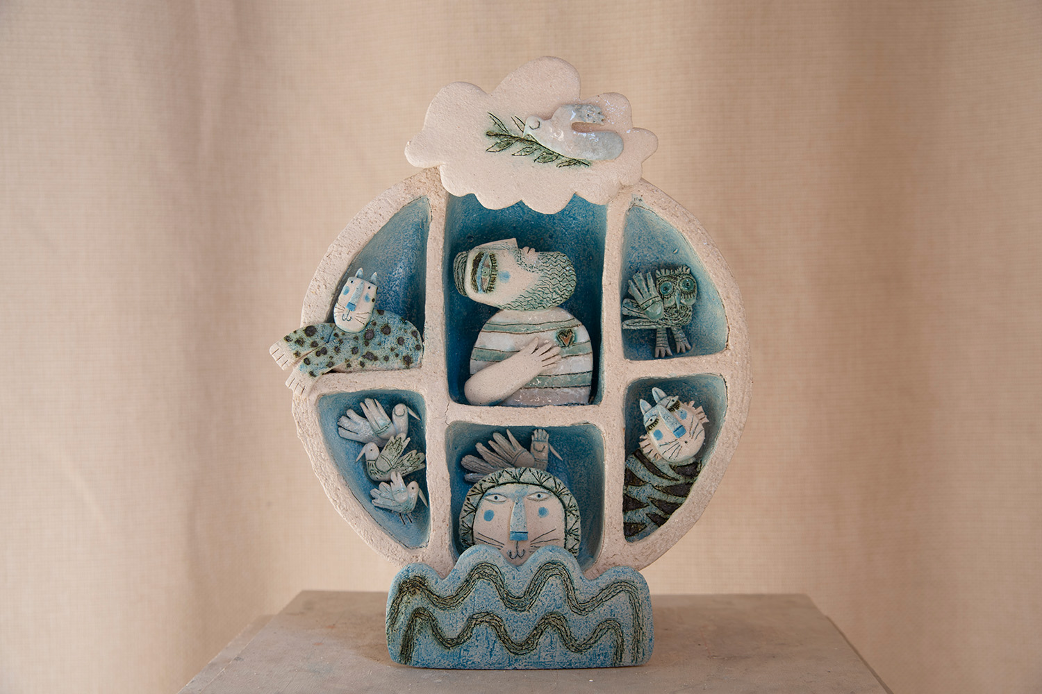 This colourful sculpture is a symbol of salvation and new beginnings, in its playful depiction of Noah's ark.