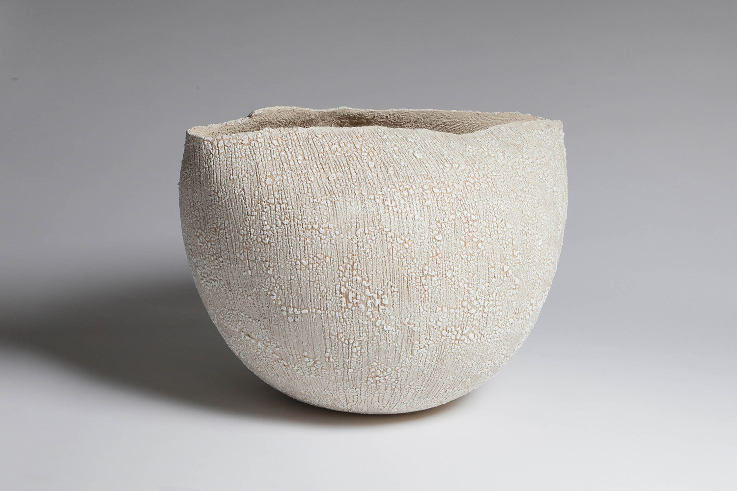 This artwork is part of a series of stoneware sculptures on lichen and is an exploration of several techniques and non-techniques of the making process. It is made of grogged stoneware, using the coiling technique, the slab building technique and stamping. It is then fired at a high temperature (1250°C).