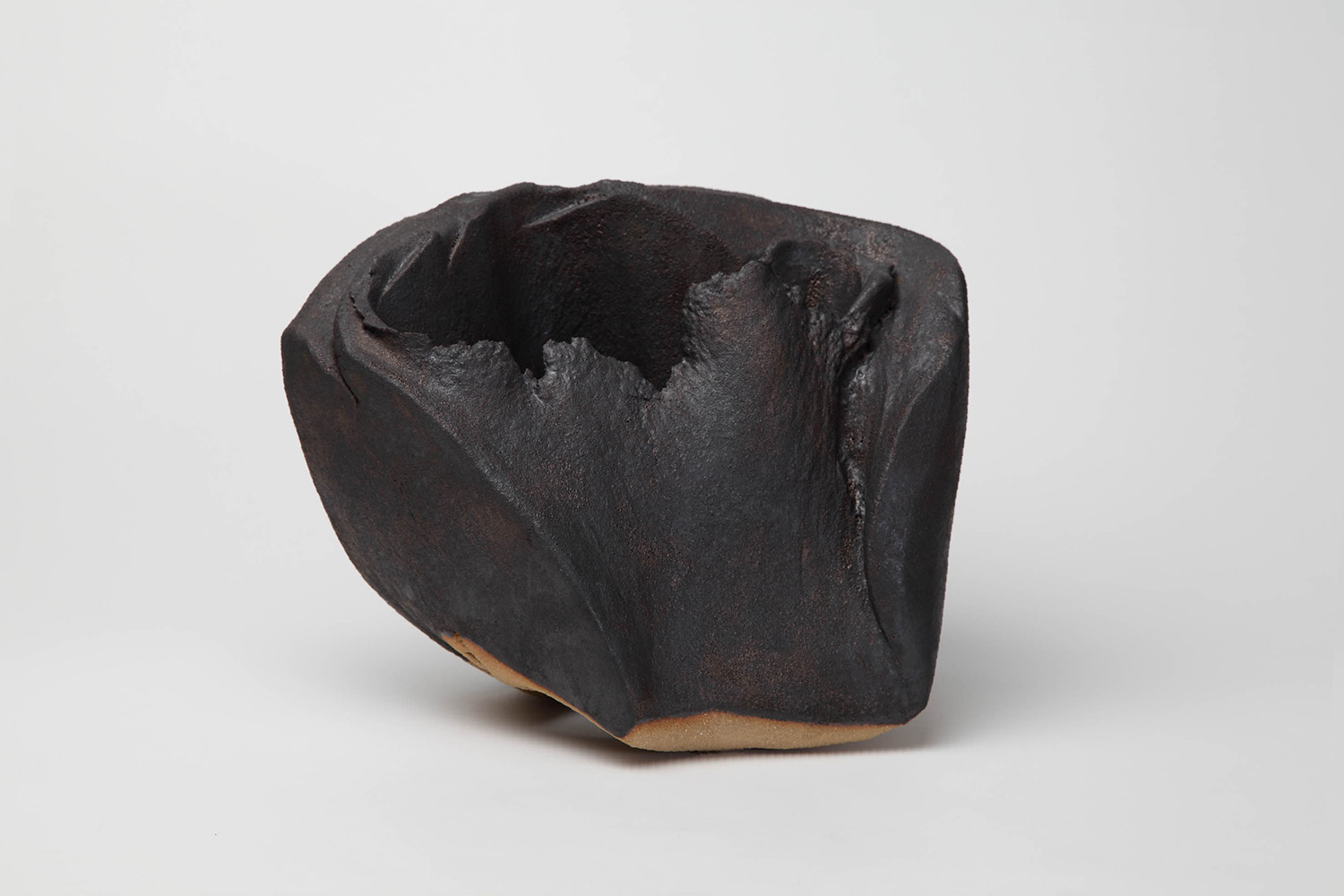 This piece is part of a series of sculptures: The holes, the breakthroughs, the passages. It is made as a block of stoneware, placed on the ground on a piece of fabric, transformed using only feet and hands, and fired at a high temperature (1280°C).