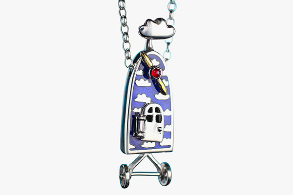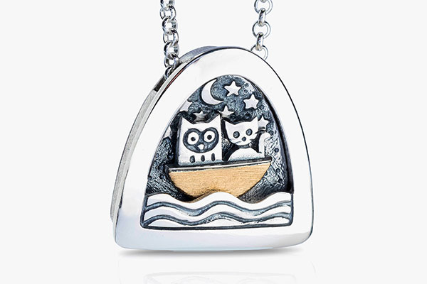 This pendant uses the signature Alan Ardiff frame to contain and convey the story of reaching for that gold star that glitters in the night sky.