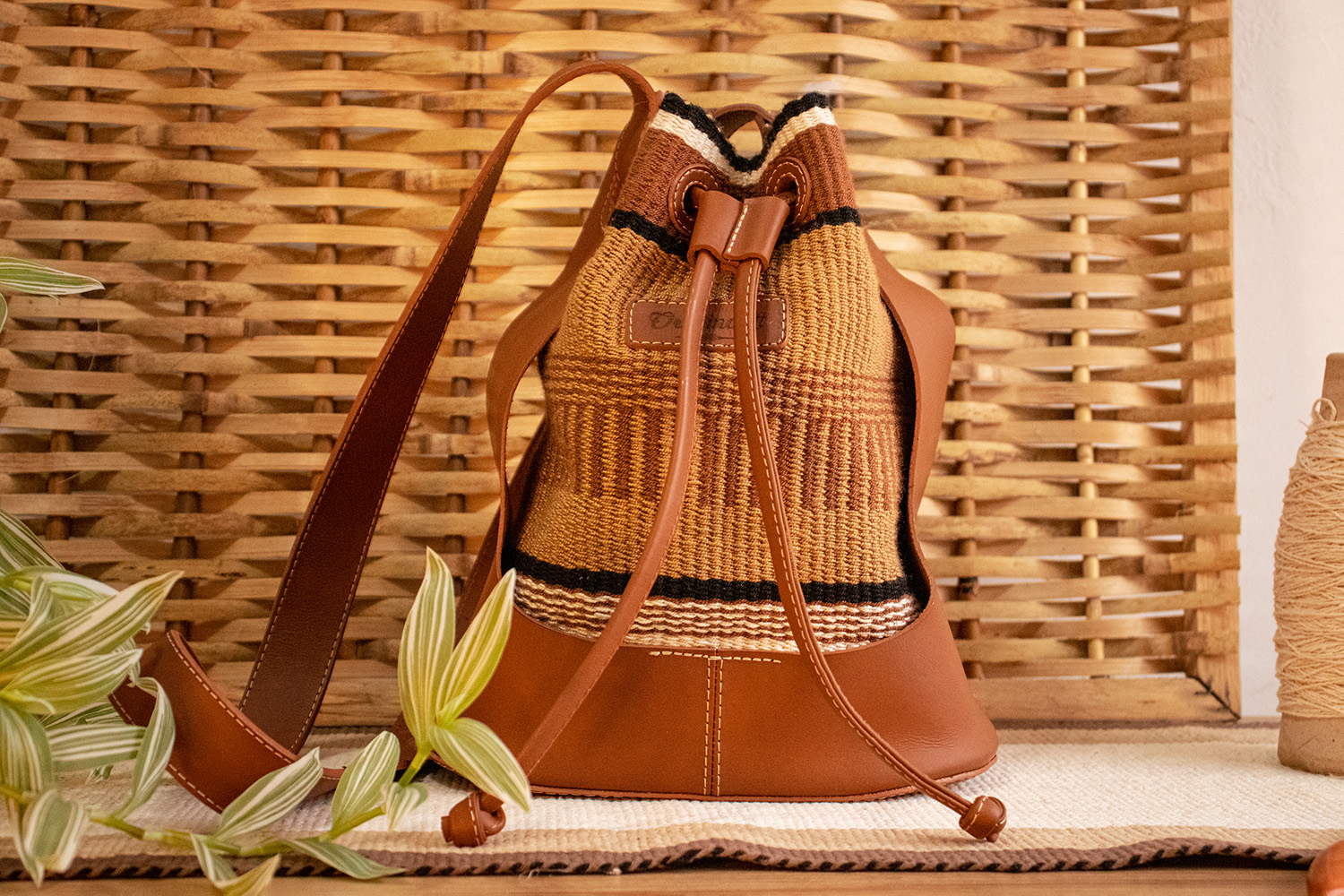 This bag was designed in leather and macramé on the vertical loom, to accessorise the Popayán is Inspired October 2022 runway.