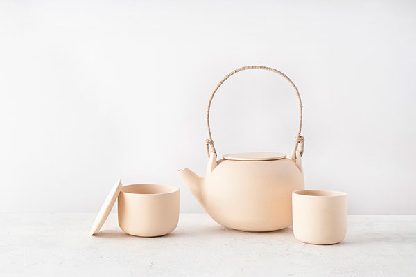 This collection of dishes showcases refined and minimalist lines in combination with the deliberately organic and natural finish of black chamotte in fire clay.