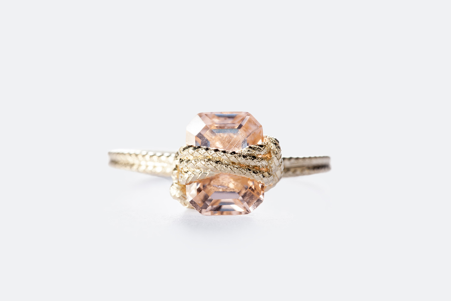 Made from 14 carat recycled yellow gold and a champagne-coloured nano crystal, this ring emanates elegance. Its 585/1000 gold alloy ensures durability while minimising its ecological footprint. The precisely hand-cut, vibrant man-made stone is set under an interlacing of gold.