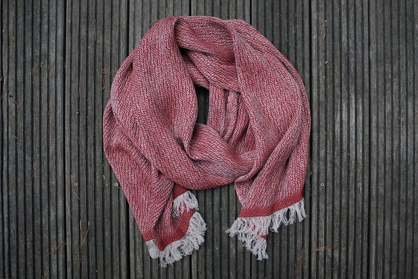 This is a handwoven striped pink-sakura inspired fringed linen shawl. It is light pink with a light-coloured natural linen stripe and narrow black stripes.