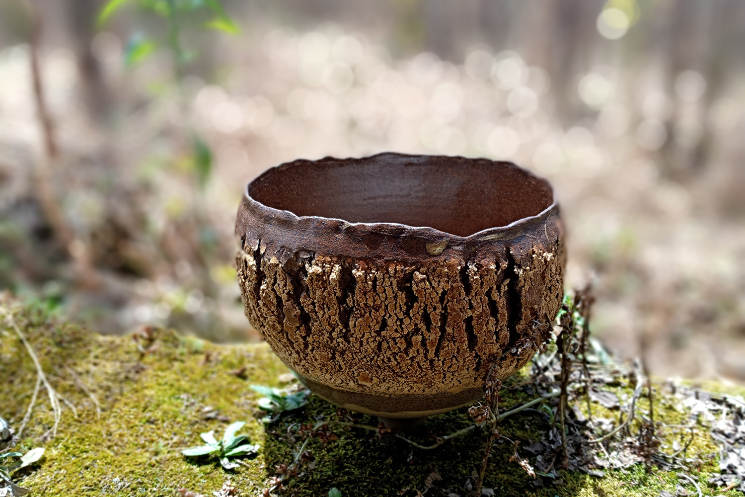 This bowl’s cracked texture is reminiscent of tree bark or the Earth’s crust in contrast with its smooth interior. Earthy beige and brown tones remind of the intrinsic properties of clay, manually moulded on the wheel and subsequently fired at 1180°C.