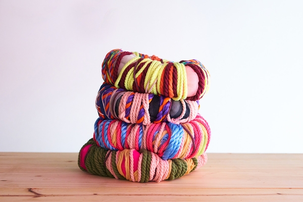 With this new collection, Mariadela Araujo Jerez not only aims to manage and create volume, but also to experiment with materials that tend to be used for other purposes in traditional weaving. Mariadela elevates these materials, creating a sculpture that is object, colour, movement and personality all wrapped up as one.