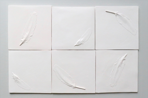 This installation consists of tulle and wild barley seeds collected from urban wastelands in Brussels. The technique used is embroidery. Like a flight of seeds, the pattern forms a veil that lets the light through.