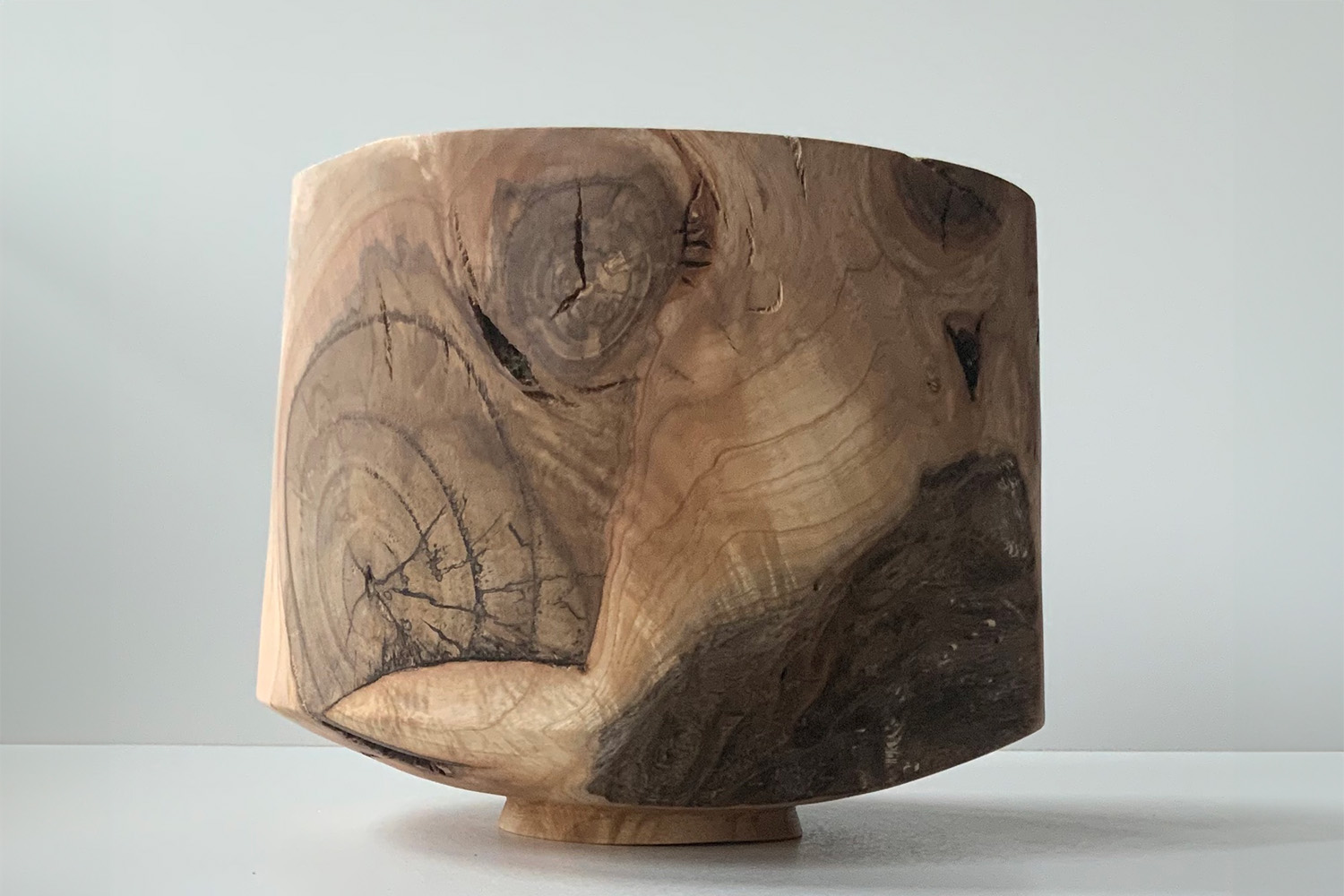 This is a hand-turned vase, made of a heavy root piece of pollard willow – a tree that came down during a storm in Charlois, a residential area in Rotterdam. The vase is finished with three coats of Danish oil.