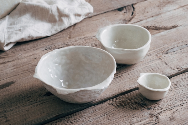 These Limoges porcelain bowls are part of the Luna collection by artisan Eguzkine Zerain. They have a translucent, glossy finish and are decorated with delicate white bubbles. Meticulously handcrafted using traditional techniques, these bowls pay tribute to the timeless beauty for which Limoges porcelain is renowned.