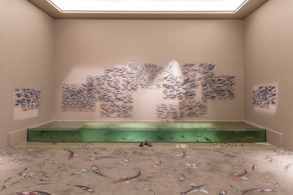 The Seabed mirror consists of multiple mirrors with full colour-body porcelain fish and an inner LED frame. It was inspired by fish of the Aegean Sea, depicting only these.
