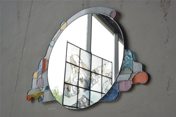 Beauffort and Béthune is a series of stained glass windows made for the central hallway of a castle, with fragments in blue and yellow. Based on historical maps, the windows depict the Northern French regions where the origins of the family Beauffort-Béthune lie. Its organic design contrasts with other religious stained glass in the castle.
