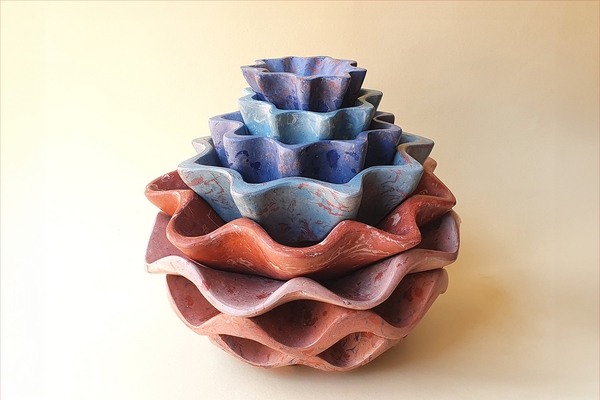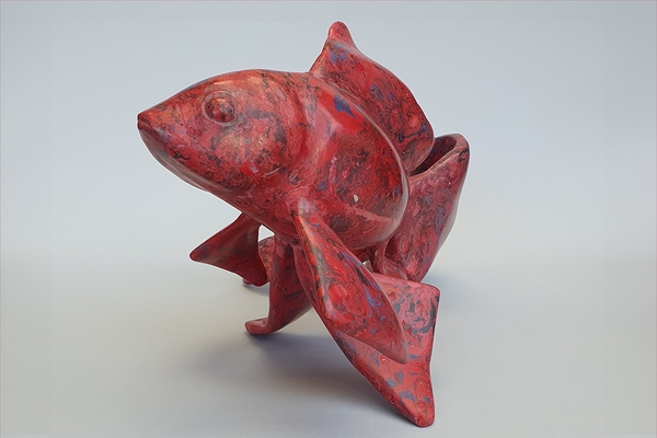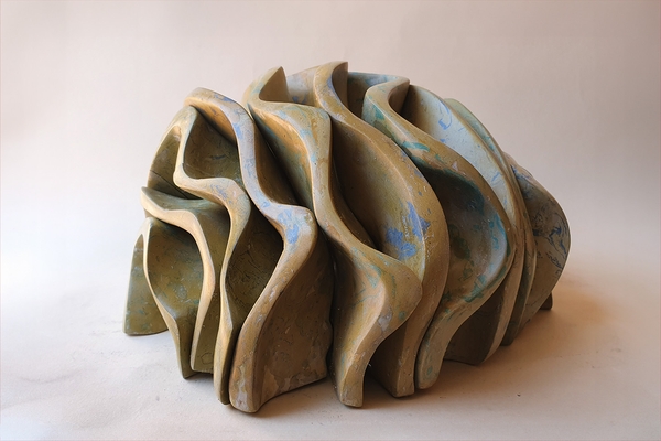 The Peacock is part of a five-piece series dedicated to animals, designed to push this material to the extremes of its structural possibilities. The graceful openwork effect of this animal posed a particular challenge. Here Umberto Ughi used a teal pigment with very subtle veins of blue and pink.