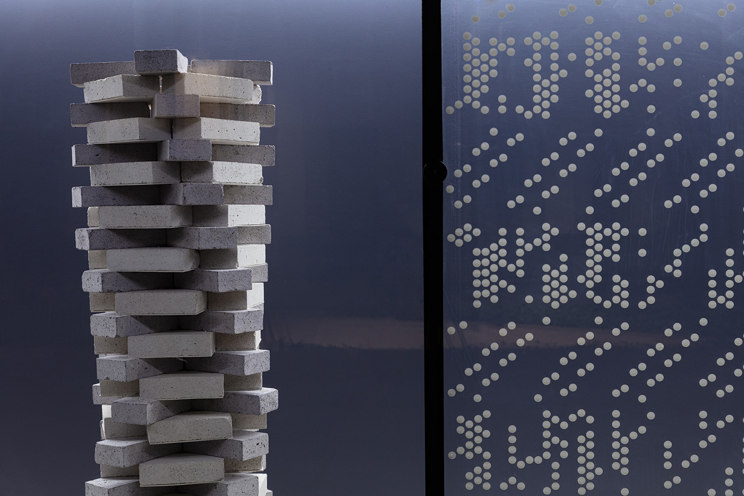 Raw-Rows presents a series of ornamental columns built with bricks, which are themselves made in a biomaterial developed at Hors-Studio, composed of mussel and oyster shell scraps and a seaweed-based binder.