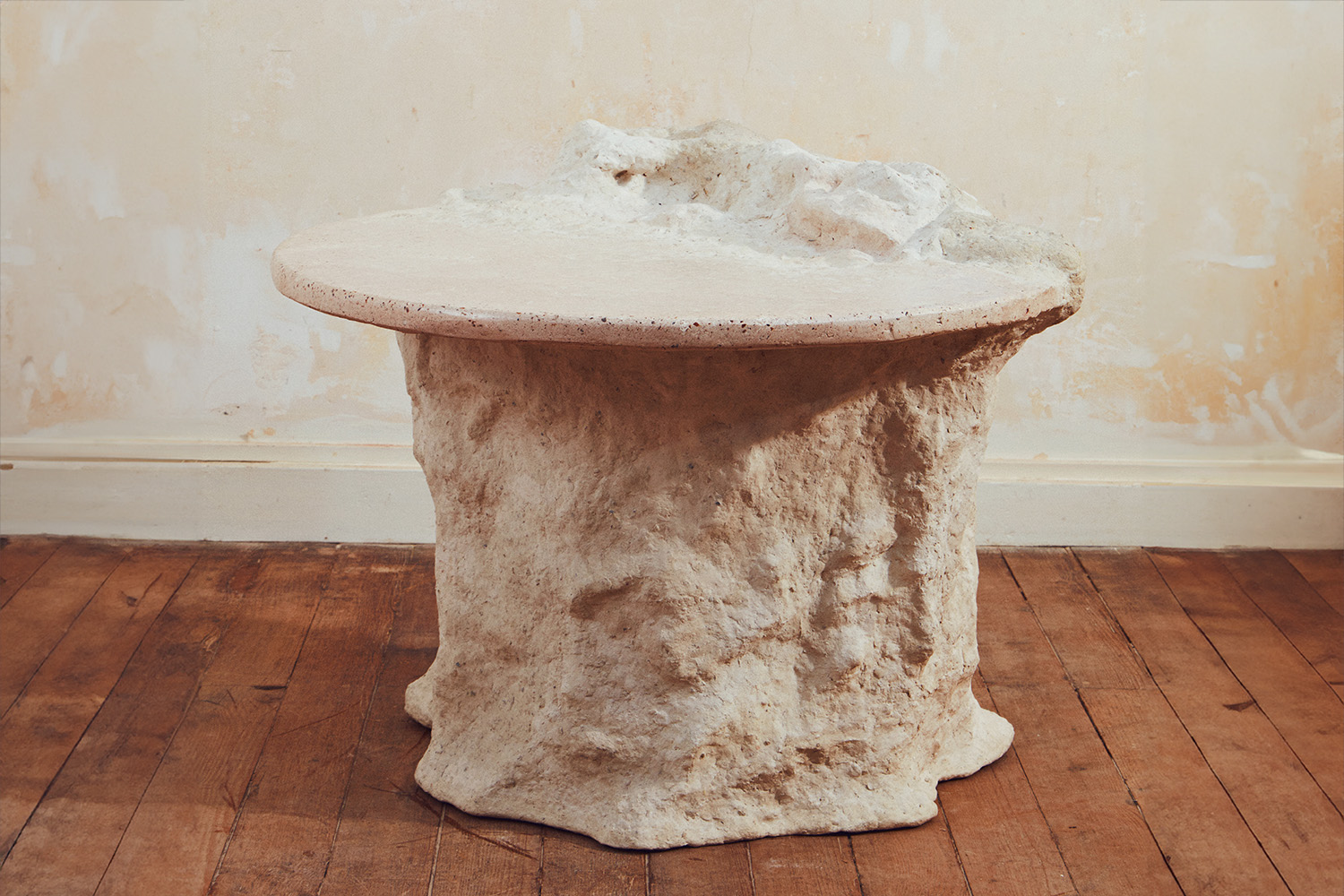 The TUF collection is a series of sculptural pieces made in Leatherstone©. It imitates stone, and is reminiscent of the Tuffeau quarries so dear to the Centre Val de Loire region in France. The TUF collection is a tribute to this stone and to the craftsmen who cut it. Each piece is made from an existing upcycled structure gleaned from local recycling centres.
