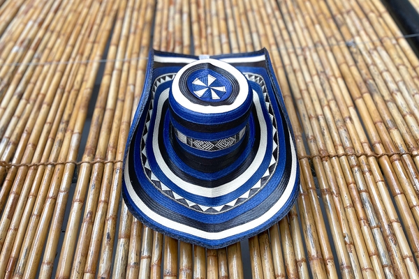 This cylindrical bin can be used to store things, or as a decorative object. It is woven in horizontal braids, made with a yellow-dyed fibre, and on its borders, it has other braids, which are white combined with yellow, and give the bin a highlighted finishing touch.