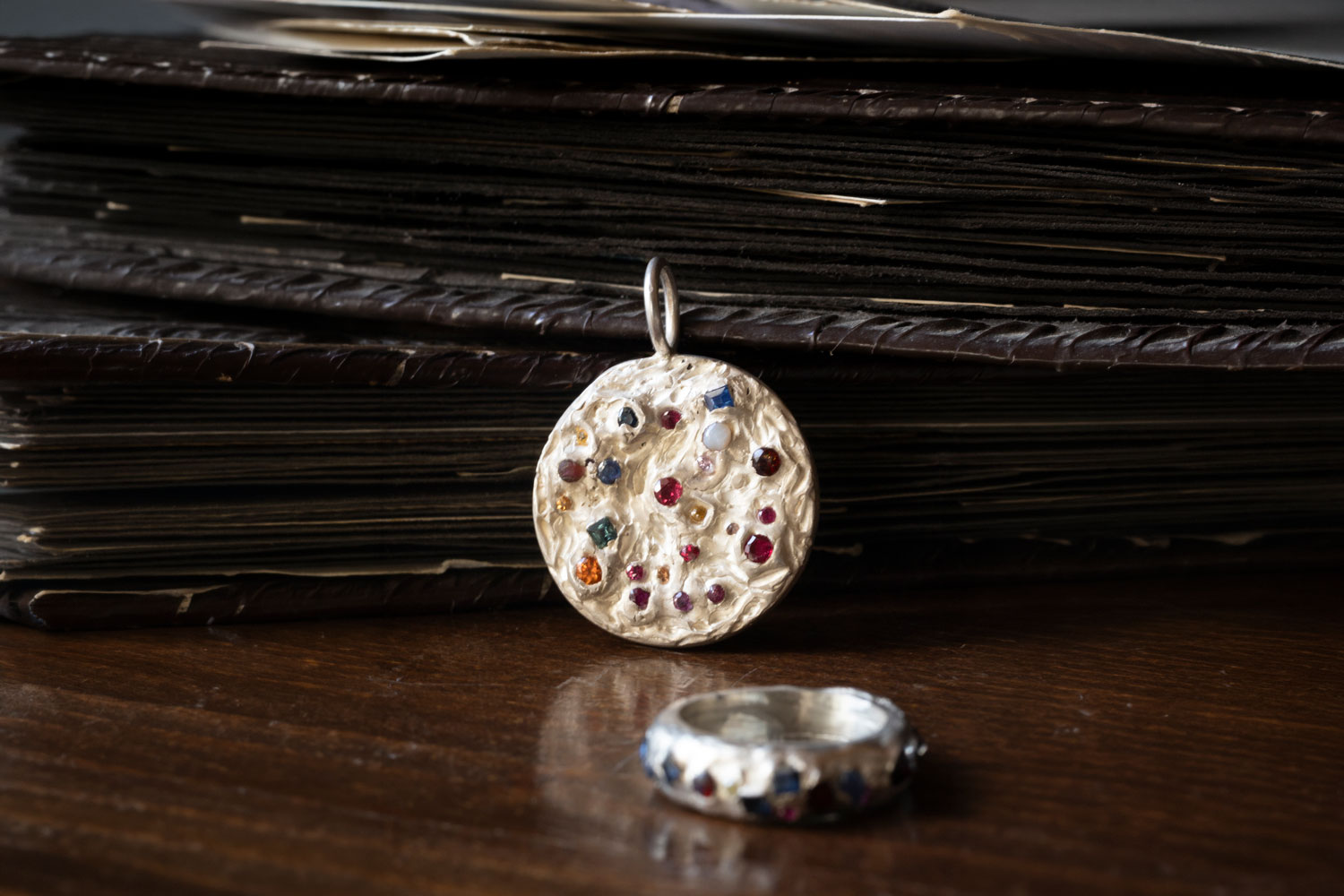 Handcrafted in silver, each of this pendant features vibrant sapphires that have been uniquely cast in place.